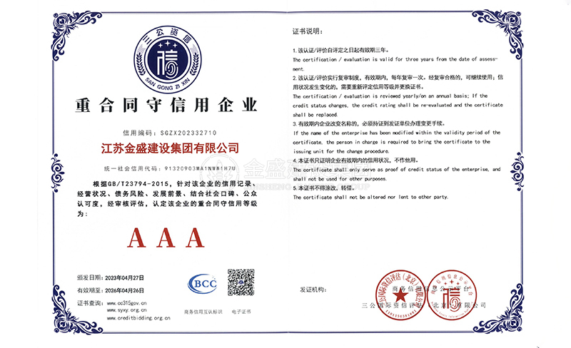 3A級(jí)資信等級(jí)證書(shū)