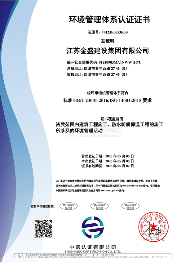 環(huán)境管理體系認(rèn)證證書(shū)